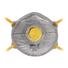Facciale filtrante perpolveri tossiche e nebbie e fumi a base acquosa. Il livello di protezione è pari a12 volte il TLV(valore limite di soglia pericolosità). La mascherina è dotata di valvola di espirazionee di uno strato intermedio dicarboni attivi. Consigliata per fumi disaldatura leggerae in presenza diodori sgradevoli.